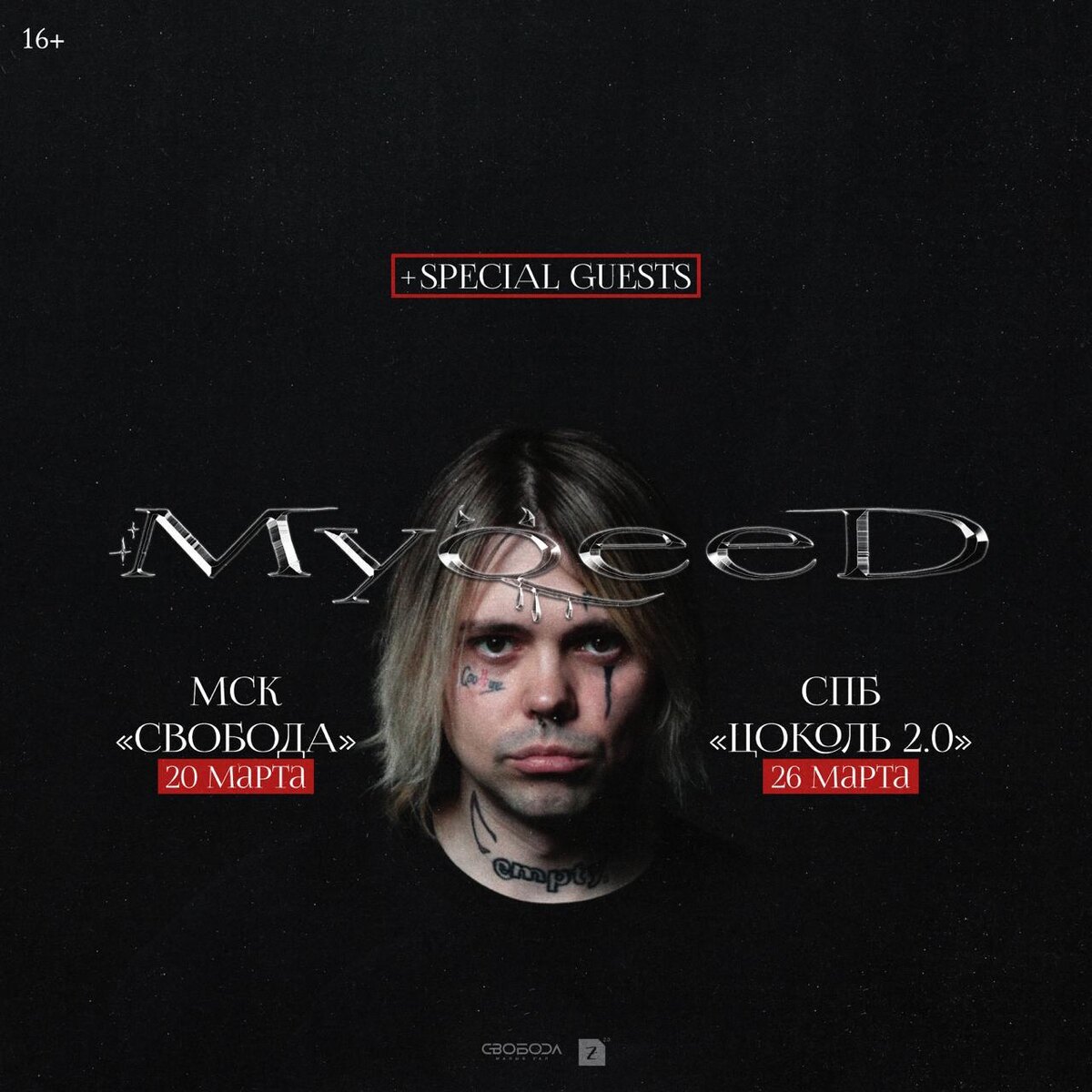 🎤 – Myqeed + специальные гости 📍 – «Свобода», Москва, Ленинградский просп. д. 47 стр. 19 📍 – «ZOCCOLO 2.0», Санкт-Петербург, Лиговский просп. д. 50 лит. П 🗓 – Москва – 20 марта, Санкт-Петербург – 26 марта 💵 – от 1 000 руб. 🔗 – Москва – билеты, Санкт-Петербург – билеты (16+) #концерты #билетынаконцерт #myqeed #москва #санктпетербург #свободамск #zoccolo20 👉 Список концертов: февраль • март • апрель @est_prohodka