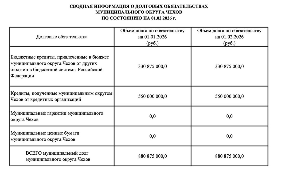 Муниципальный долг подмосковного Чехова составляет более 880 миллионов рублей
