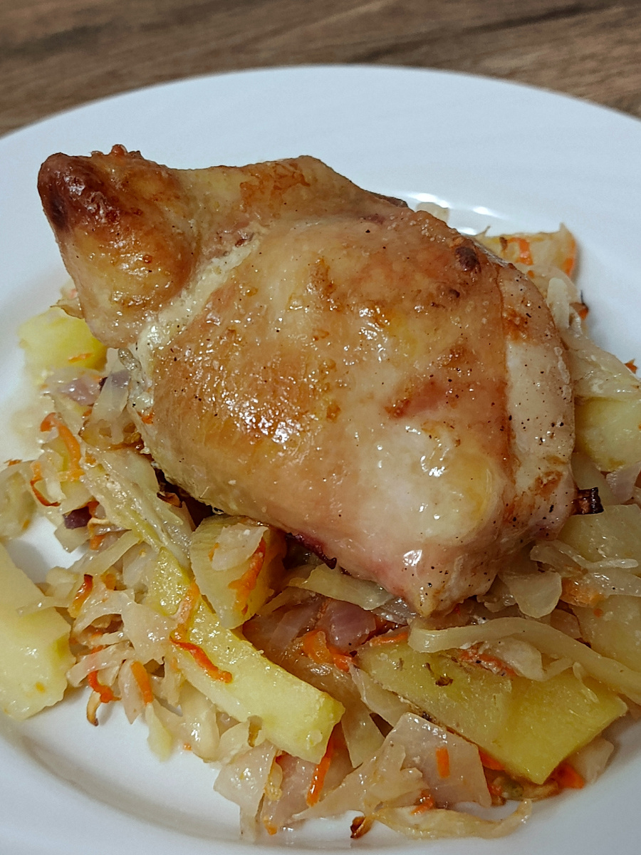 Недавно я решила приготовить что-то вкусное и простое — куриные бедрышки с капустой и картошкой в духовке. Это блюдо напоминает мне о доме и тепле.