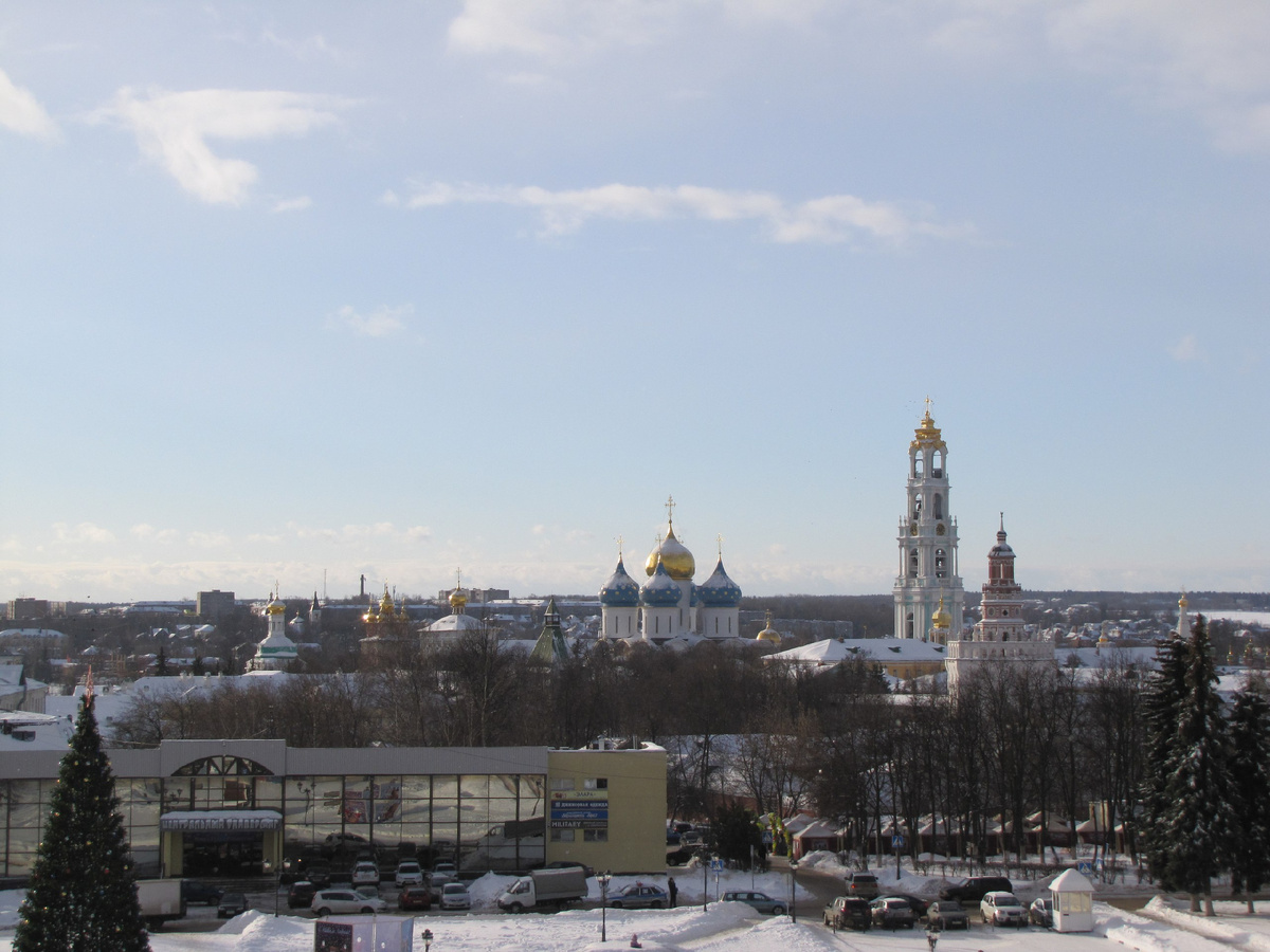 Рассказ о городах Золотого кольца был бы неполным без рассказа о Сергиевом Посаде. Сергиев Посад – город в России на северо-востоке от Москвы. Он входит в ансамбль древнерусских городов Золотого кольца. Здесь расположена знаменитая Троице-Сергиева лавра XIV века постройки, а также церковь Вознесения Господня, украшенная синими куполами с золотыми крестами и фресками. Уникальной городской и российской достопримечательностью является архитектурный ансамбль Троице-Сергиевой лавры из более пятидесяти архитектурных сооружений. Здесь Андрей Рублёв написал икону «Троица». В этих стенах крестили наследников престола. Во время стрелецкого бунта 1682 года здесь укрывался юный Пётр I. Преподобный Сергий Радонежский (до принятия монашества его звали Варфоломей) основал Троицкий монастырь в 1337 году вместе со своим братом Стефаном, поселившись на холме Маковец, где была построена первая деревянная церковь Святой Троицы, что положило начало будущей великой обители — Свято-Троицкой Сергиевой лавре