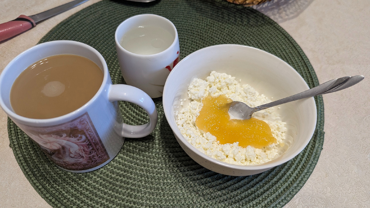 Для нас с мужем творог со сметаной и мёдом.