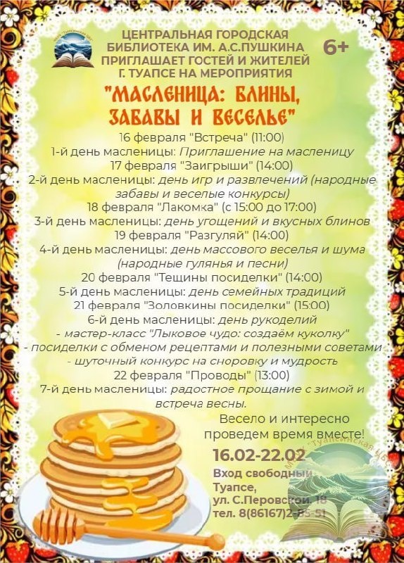 #библиотека #Туапсе #афишаТуапсе #кудасходитьвТуапсе #февраль #масленица