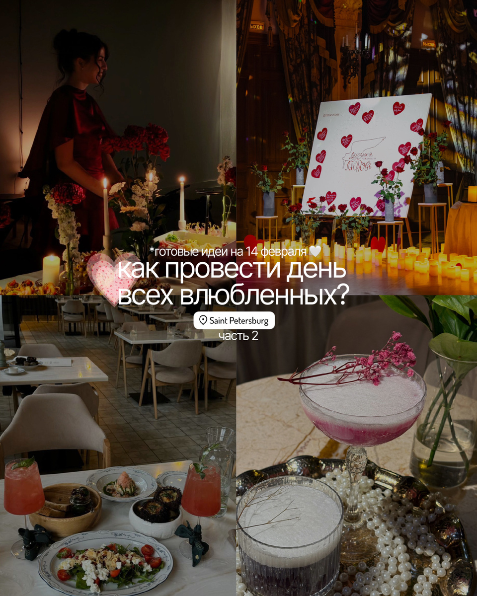 14 февраля — это не столько про дату в календаре, сколько про повод остановиться и провести вечер красиво. В Петербурге для этого есть всё: камерные залы, уютные рестораны, необычные форматы свиданий и места, где легко создать особенное настроение.