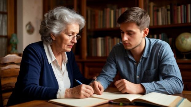 — Сейчас разберём, — она придвинула стул. — Смотри, ты вот здесь правильно начал, но потом свернул не туда. Давай вместе.