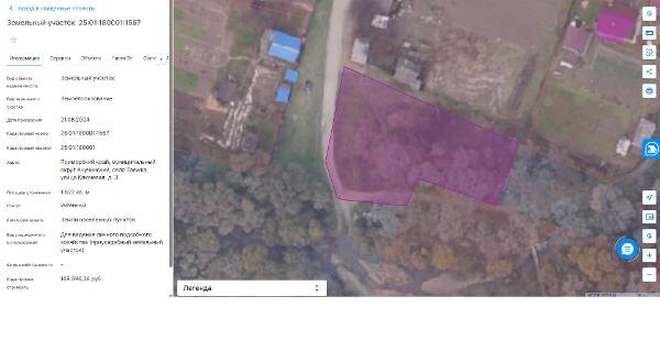Местоположение установлено относительно ориентира, расположенного за пределами участка. Ориентир жилое здание. Участок находиться примерно в 38 м по направлению на юг от ориентира. Почтовый адрес ориентира: Приморский край, Анучинский район, с.Таежка, ул.Ключевая, д.3. Канал: Госземля Приморский край Область: - Район: - Населенный пункт: - Локация: Смотреть на карте ВРИ: Для ведения личного подсобного хозяйства (приусадебный земельный участок) Кадастровый номер: 25:01:180001:1567 Кадастровая стоимость: - Вид сделки: Аренда Площадь: 1500 м² Начальная цена: - руб. Дата завершения: 12.02.2026 Подробнее: ГИС ТОРГИ #госземля #земляотгосударства #земля #земельныйучасток #земельныеторги #торги #аукцион #арендаземли #аренда #приморскийкрай