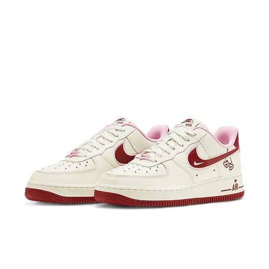 Nike представляет свои совершенно новые Air Force 1. Вишенки в форме сердца Nike Wmns Air Force Valentine свисают над логотипом Swoosh, а вырезы в виде сердечек расположены на язычках пятки. Надпись Air на подошве украшена дополнительными сердечками.