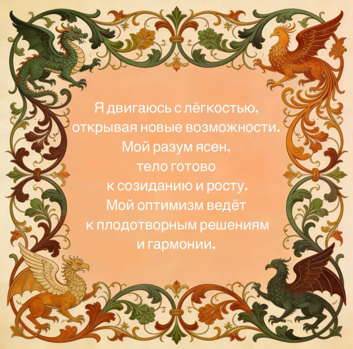 : • Физическая сила: йога, силовые упражнения, строительство/ремонт, лечение хронических болезней. • Обучение: курсы, чтение, переговоры, сделки; разнообразная питательная еда (молочное, вино умеренно). • Путешествия короткие, планирование, творчество, презентации. Нежелательно: • Переедание, голодание; лень — энергия требует выхода. • Рискованные операции, пассивность. Дыхательные и телесные практики Вдохни через нос на 4, чувствуя прилив сил, выдохни на 6 расслабляя плечи — повтори 8 раз для бодрости и фокуса. Восстановление (днём за рабочим столом, 2 мин). Сядь прямо, вдохни на 4 поднимая руки вверх, выдохни на 6 возвращая их вниз — растяжка шеи и спины для ясности ума. Заземление (вечером перед сном, 4 мин). Ляг, рука на живот: вдох 4 наполняя себя прожитой энергией дня, принимая и пропуская через себя события, выдох 8 отпуская напряжение — для восстановления сил.