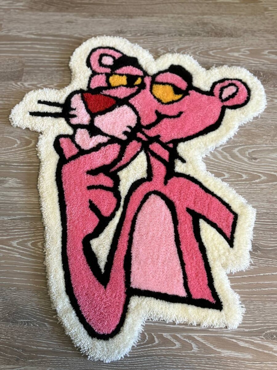 Ковер ручной работы, вдохновленный мультфильмом "Розовая пантера"