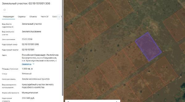 Название: земельный участок из категории земель населенных пунктов, кадастровый номер 02:19:151001:306 площадью 1000+/-11 кв.м., вид