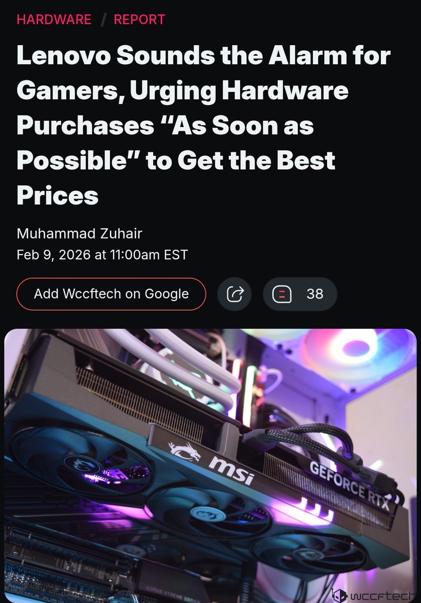 Президент Lenovo по Северной Америке заявил о возможном резком росте цен на ПК и комплектующие в ближайшие полгода. По его словам, к 2026 году основной проблемой станет не стоимость, а доступность оборудования. Запасы на складах дистрибьюторов сокращаются ежедневно. Причина — крупные технологические компании переориентируют производство и инвестируют в развитие ИИ, что влияет на рынок традиционного "железа". https://dzen.ru/id/5c0e38ff46ef5c00aaa80527