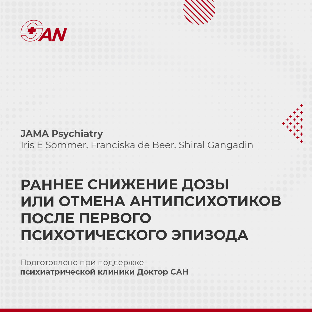 В журнале JAMA Psychiatry опубликовано прагматическое рандомизированное клиническое испытание HAMLETT, в котором сравнивались кратко- и долгосрочные эффекты раннего снижения дозы или отмены антипсихотиков и продолжения поддерживающей терапии у пациентов в ремиссии после первого психотического эпизода. В течение первого года стратегия снижения дозы или отмены была ассоциирована с более высоким риском рецидива и снижением качества жизни по сравнению с продолжением поддерживающей терапией. Вместе с тем на 3-м и 4-м годах наблюдения в группе раннего снижения дозы/отмены отмечалось более высокий уровень социального функционирования (GAF), а также тенденция к меньшей выраженности симптоматики по PANSS. Частота серьёзных нежелательных явлений в целом была сопоставимой между группами, однако в группе снижения дозы/отмены было зарегистрировано больше завершённых суицидов. Подробнее о психозах: https://doctorsan.ru/lechenie-psihozov