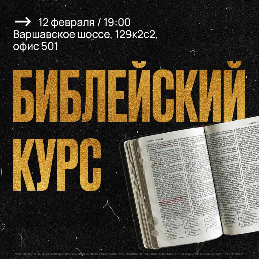 Приглашаем вас на библейский курс — место, где Слово Божье оживает и меняет сердце. 12 февраля / 19:00 / Варшавское шоссе, 129к2с2, 5 этаж, офис 501 До встречи 🙏