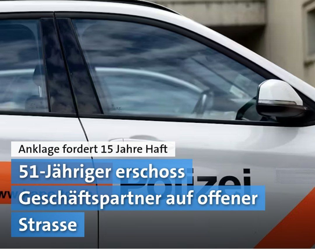 Защитник настаивал на наказании на пять лет меньшем. Адвокат семьи погибшего потребовал вынесения приговора за убийство при отягчающих обстоятельствах «Сегодня речь идёт не о том, кто стрелял», — заявила прокурор во вторник в окружном суде Кройцлингена в ходе процесса по делу об убийстве. Согласно обвинению, в апреле 2023 года ныне 51-летний мужчина после ссоры застрелил своего делового партнёра тремя выстрелами на улице. Видеозаписи зафиксировали ссору между обвиняемым и жертвой, а также события непосредственно перед выстрелами. Кроме того, у 51-летнего мужчины были обнаружены следы пороховых газов, а показания свидетелей изобличают его, продолжила прокурор. Говоря о самом преступлении, прокурор заявила, что оно напоминало казнь. «Последний выстрел был прицельным выстрелом в голову — не случайным и не неконтролируемым, а окончательным». Убийство не было ни несчастным случаем, ни самообороной. «Разумно действующий человек, без сомнений, мог бы отреагировать иначе, чем это сделал обв