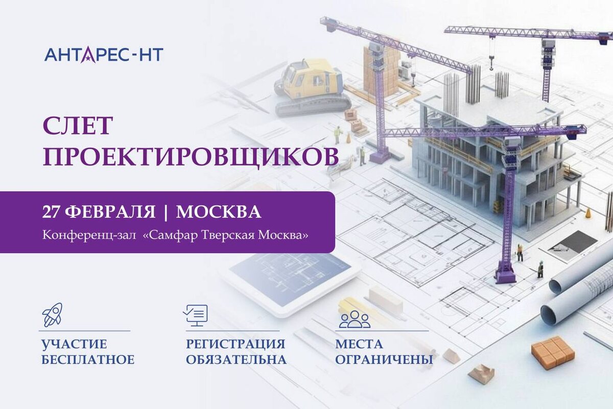 27 февраля 2026 | Москва Конференц-зал «Самфар Тверская Москва» (быв. Марриотт Тверская) Адрес: г. Москва, ул. 1-я Тверская-Ямская, д. 34 ⏩РЕГИСТРАЦИЯ⏪ Приглашаем проектировщиков на профессиональную встречу, посвящённую реализации сложных и нестандартных строительных проектов. Это не конференция «про всё и ни о чём», а живой круг профессионалов, где говорят о реальных объектах, технологиях и инженерных решениях, которые уже работают на стройплощадках. 🔧 КОМУ БУДЕТ ПОЛЕЗНО - проектировщикам - инженерам и техническим специалистам - участникам проектов с модульным и индустриальным строительством - тем, кто закладывает решения на стадии проекта и отвечает за реализуемость ПРОГРАММА МЕРОПРИЯТИЯ 10:00 — Сбор и регистрация гостей. 10:30 — Приветственное слово. Спикер: Михайлов Александр Владимирович, Директор и учредитель компании АНТАРЕС-НТ 11:00 — Разработка и реализация нестандартных и сложных проектов на базе башенных кранов 12:30 — Новые технологии: роботизация строительных и серв