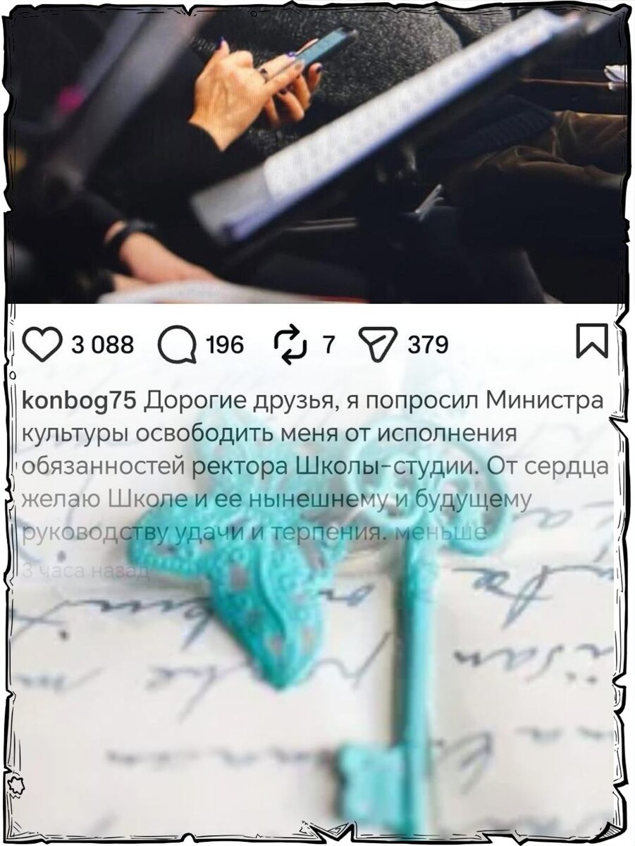 Везде успевающий режиссер, актер Константин Богомолов вдруг решил отказаться от ректорства в Школе-студии МХАТ. Сам. Только что выложил пост в запрещенной сети.
