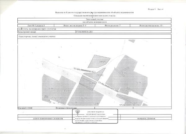 Название: Земельный участок с кадастровым номером 57:06:0080101:283, площадью 5000 кв.м, с разрешенным использованием: для ведения личного