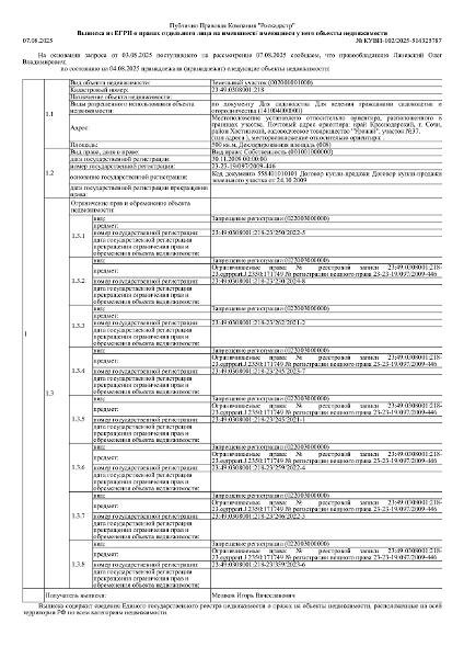 В. Земельный участок (для ведения гражданами садоводства и огородничества), площадь 500 кв.м., кадастровый номер 23:49:0308001:218. Адрес Краснодарский край, г. Сочи, Хостинский район, садоводческое товарищество «Урожай», участок №37. Границы земельного участка не установлены в соответствии с требованиями земельного законодательства. Начальная цена 1 354 900 руб., задаток 203 235 руб., шаг аукциона 13 549 руб., ув. 85 Канал: Госземля Краснодарский край Область: край Краснодарский г. Сочи Район: Хостинский район Населенный пункт: садоводческое товарищество «Урожай», участок №37 Локация: Смотреть на карте ВРИ: Ведение садоводства Кадастровый номер: 23:49:0308001:218 Кадастровая стоимость: - Вид сделки: Продажа Площадь: 500 м² Начальная цена: 1354900.00 руб. Дата завершения: 13.03.2026 Подробнее: ГИС ТОРГИ #госземля #земляотгосударства #земля #земельныйучасток #земельныеторги #торги #аукцион #продажаземли #продажа #краснодарскийкрай