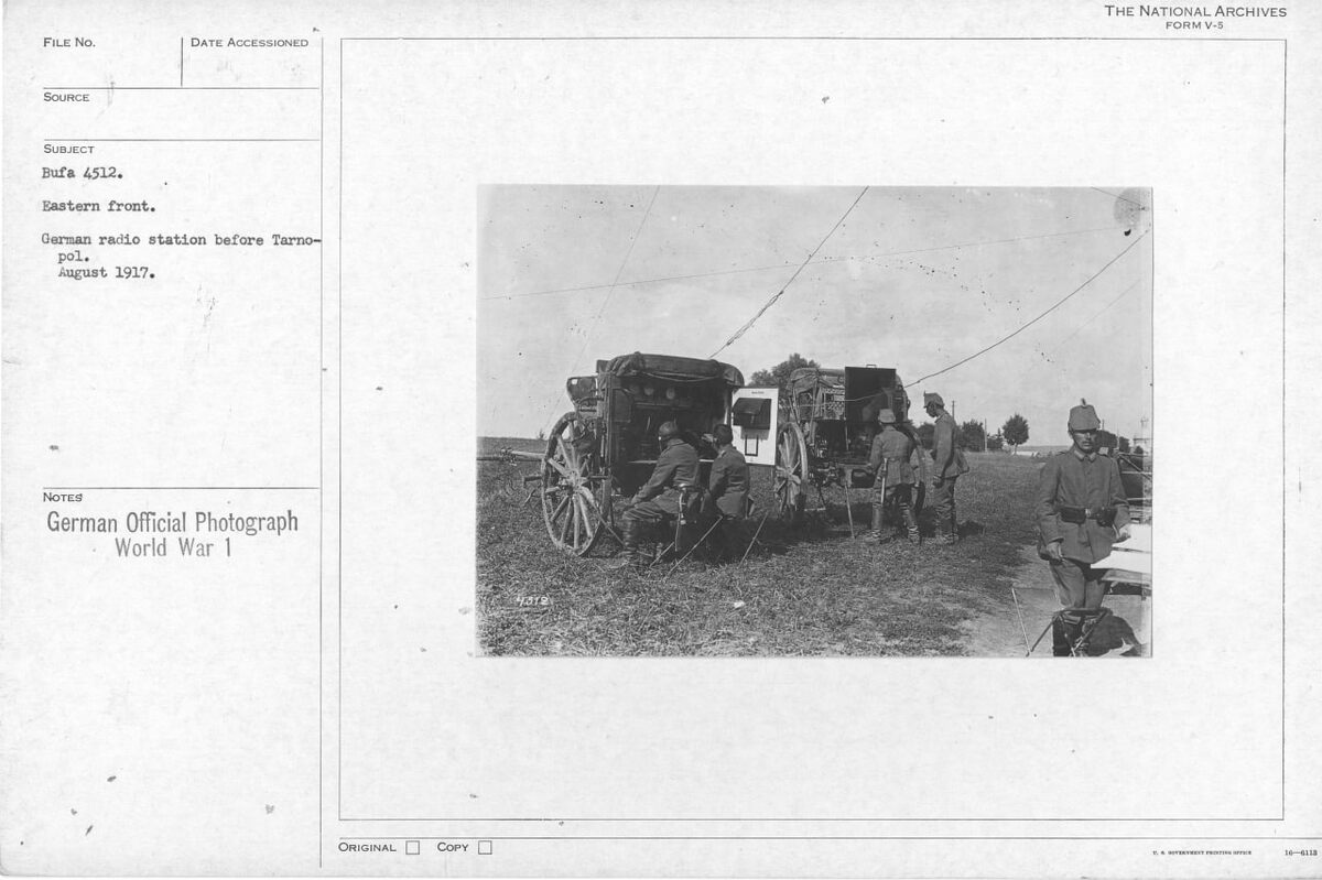 Август 1917 г. Восточный фронт под Тернополем. Развернутая радиостанция армии Германской Империи. #Германия #ПМВ
