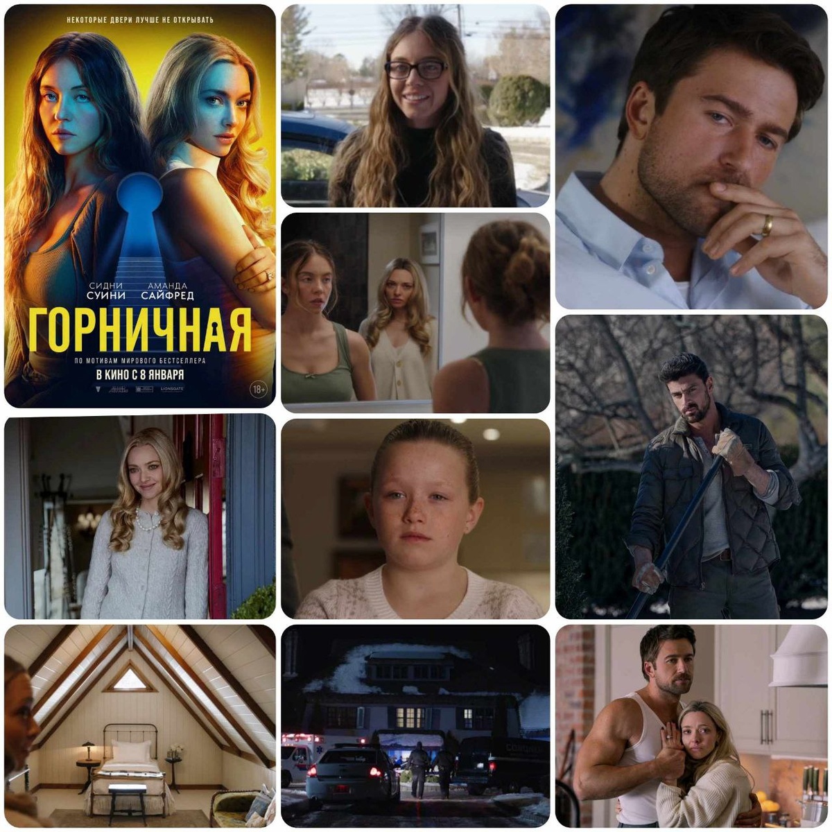 Отзыв на фильм «Горничная» Наконец решилась посмотреть экранизацию триллера «Горничная» по книге Фриды Макфадден. Мой отзыв о книге 👉 здесь. Фильм довольно близок к первоисточнику, но отличия есть — прежде всего в финале, деталях сюжета и акцентах персонажей. Сюжетная основа и главный твист (кто настоящий злодей) сохранены, но в фильме история более жесткая и зрелищная, особенно в концовке. При этом фильм более упрощен в психологическом плане. В книге акцент делается на внутренние мысли Милли, нагнетая психологическое напряжение, а в фильме — на визуальное напряжение, насилие и драматические сцены. СЮЖЕТ Психологический триллер рассказывает историю девушки Милли — молодой женщины с трудным прошлым, живущей фактически на улице. Получив работу горничной в роскошном доме состоятельной семьи Винчестер, она считает, что ей улыбнулась удача. Однако почти сразу становится ясно, что в доме царит напряжённая атмосфера: хозяйка Нина ведёт себя непредсказуемо (от щедрости до истерик), её муж Э