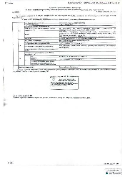 А. Земельный участок (для индивидуального жилищного строительства), площадь 600 кв.м., кадастровый номер 23:02:1504000:1315. Адрес: Краснодарский край, Апшеронский район, городское поселение Нефтегорское, х. Николаенко, ул. Каштановая, 28 А. Начальная цена 491 200 руб., задаток 492 руб., шаг аукциона 4 912 руб., ув. 1869 Канал: Госземля Краснодарский край Область: край Краснодарский Апшеронский район Район: городское поселение Нефтегорское Населенный пункт: х. Николаенко, ул. Каштановая, 28 А Локация: Смотреть на карте ВРИ: Для индивидуального жилищного строительства Кадастровый номер: 23:02:1504000:1315 Кадастровая стоимость: - Вид сделки: Продажа Площадь: 600 м² Начальная цена: 491200.00 руб. Дата завершения: 02.03.2026 Подробнее: ГИС ТОРГИ #госземля #земляотгосударства #земля #земельныйучасток #земельныеторги #торги #аукцион #продажаземли #продажа #краснодарскийкрай