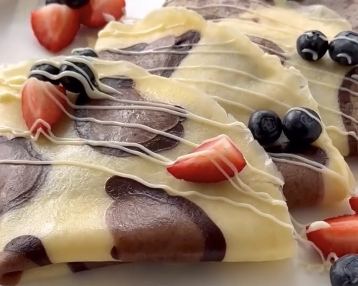 🐆🥞 Эффект «вау» гарантирован! Сохраняйте рецепт и поехали готовить 🚀 Ингредиенты: • Мука — 300 г • Сахарная пудра — 3 ст. л. • Яйца — 3 шт. • Щепотка соли • Сливочное масло (растопленное) — 50 г • Растительное масло — 2 ст. л. • Молоко — 600 мл • Какао — 3–4 ч. л. Для удобства тёмное и бежевое тесто лучше перелить в бутылочки или соусники. 🔗Пошаговый рецепт https://dzen.ru/a/aYxIesTiHxdv_-UA