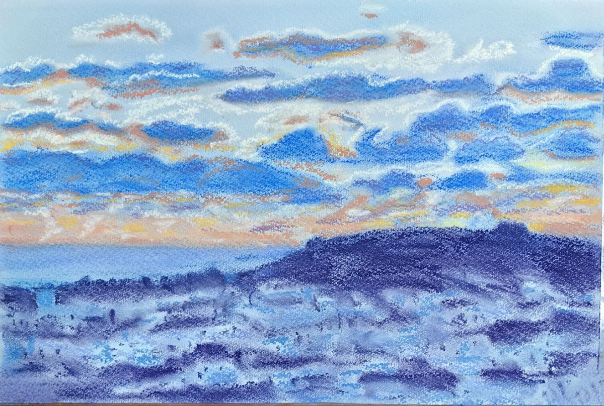 Бумага Палаццо премиум оказалась не очень подходящей для сухой пастели, у меня вариант с бабочкой на обложке. Я кобальтовый мелок , которым рисовала облака, не могла полностью растереть. Выглядели облака, как обведённые цветным карандашом, пришлось применить поверх мелки другого цвета. #сухаяпастель #softpastels #пейзаж #закат #пастельныйрисунок