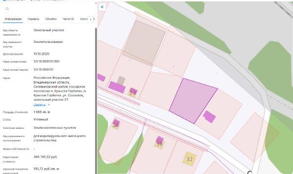 Название: Земельный участок из категории земель земли населённых пунктов с кадастровым номером 33:10:000101:681, с разрешённым использованием: для индивидуального жилищного строительства, площадью 1966 кв.м, адрес: Российская Федерация, Владимирская область, Селивановский район, городское поселение п. Красная Горбатка. п. Красная Горбатка. ул. Сосновая, земельный участок 27 Канал: Госземля Владимирская область Область: обл Владимирская Район: м.о. Селивановский городское поселение п. Красная Горбатка. п. Красная Горбатка. ул. Сосновая Населенный пункт: земельный участок 27 Локация: Смотреть на карте ВРИ: Для индивидуального жилищного строительства Кадастровый номер: 33:10:000101:681 Кадастровая стоимость: - Вид сделки: Аренда Площадь: 1966 м² Начальная цена: - руб. Дата завершения: 13.03.2026 Подробнее: ГИС ТОРГИ #госземля #земляотгосударства #земля #земельныйучасток #земельныеторги #торги #аукцион #арендаземли #аренда #владимирскаяобласть