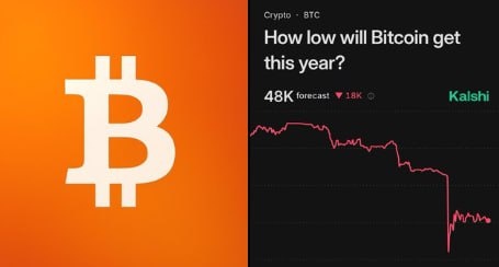ТОЛЬКО ЧТО: по прогнозам трейдеров на Kalshi, в этом году курс биткоина может упасть до 48 000 долларов.