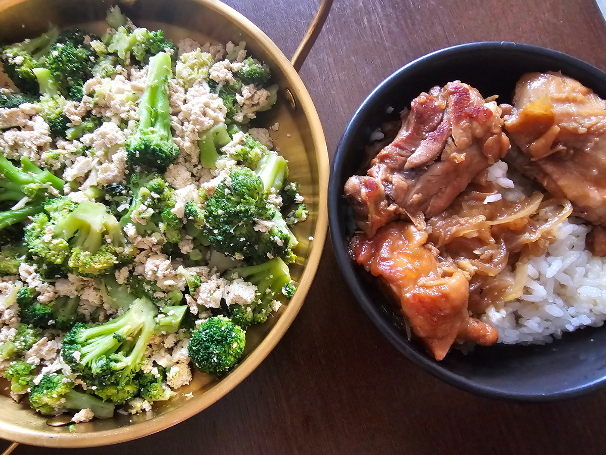Это будет курица, обжаренная в соевом соусе (간장버터 닭구이), подаваемая с рисом и брокколи с тофу (브로콜리 두부무침).