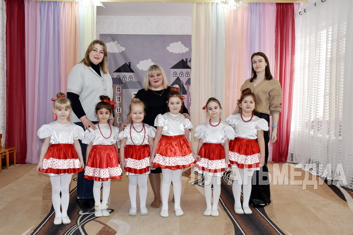 В рамках Большого всероссийского фестиваля детского и юношеского творчества и Всероссийского детского фестиваля народной культуры «Наследники традиций» воспитанницы «Алёнушки» продемонстрировали танец «Я – русская девчонка», с которым они планируют покорять республиканскую сцену. Задорная мелодия позвала в круг малышек, одетых в яркие красные юбки, белые блузы и красные бусы. Невероятная харизма и отточенные движения сделали своё дело: гости расплылись в улыбках и были щедры на аплодисменты. Педагог дополнительного образования детского сада Анастасия Стрюк рассказала, что всем участницам от 5 до 6 лет. Репетировать и выступать им очень нравится, особенно интересно детям посредством таких танцев узнавать о наших традициях и культуре. – В феврале 2026 года в ЛНР проходит ежегодный республиканский хореографический конкурс «Танцы +» среди участников хореографических коллективов образовательных организаций в возрасте от 4 до 23 лет. В этом году заявлено 6 номинаций. Его основными целями явл