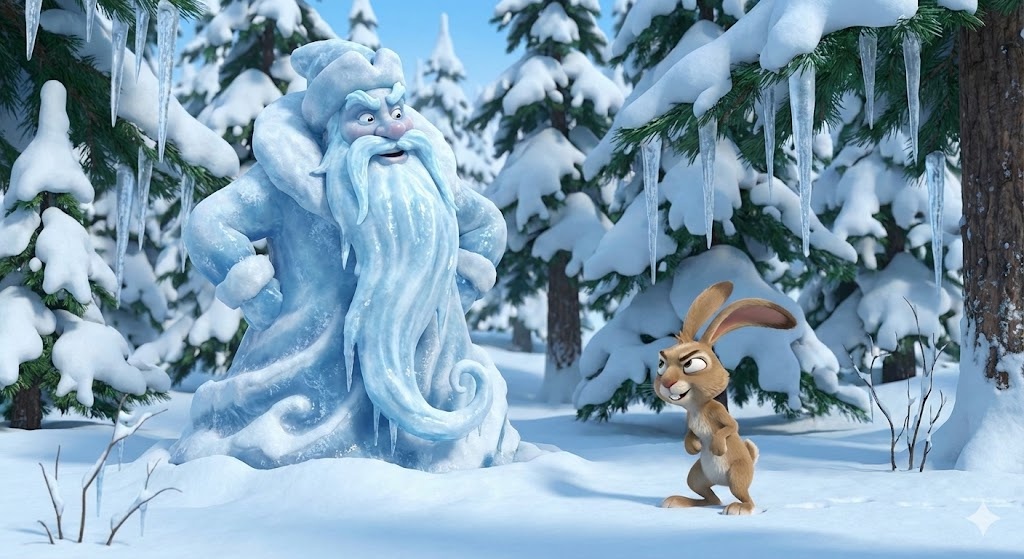 Повстречались как-то в лесу Мороз и заяц. Мороз расхвастался: —Я самый сильный в лесу. Любого одолею, заморожу, в сосульку превращу. —Не хвастай, Мороз, не одолеешь! — говорит заяц. —Нет, одолею! —Нет, не одолеешь! — стоит на своем заяц. Спорили они, спорили, и надумал Мороз заморозить зайца. И говорит: —Давай, заяц, об заклад биться, что я тебя одолею. —Давай, — согласился заяц. Принялся тут Мороз зайца морозить. Стужу-холод напустил, ледяным