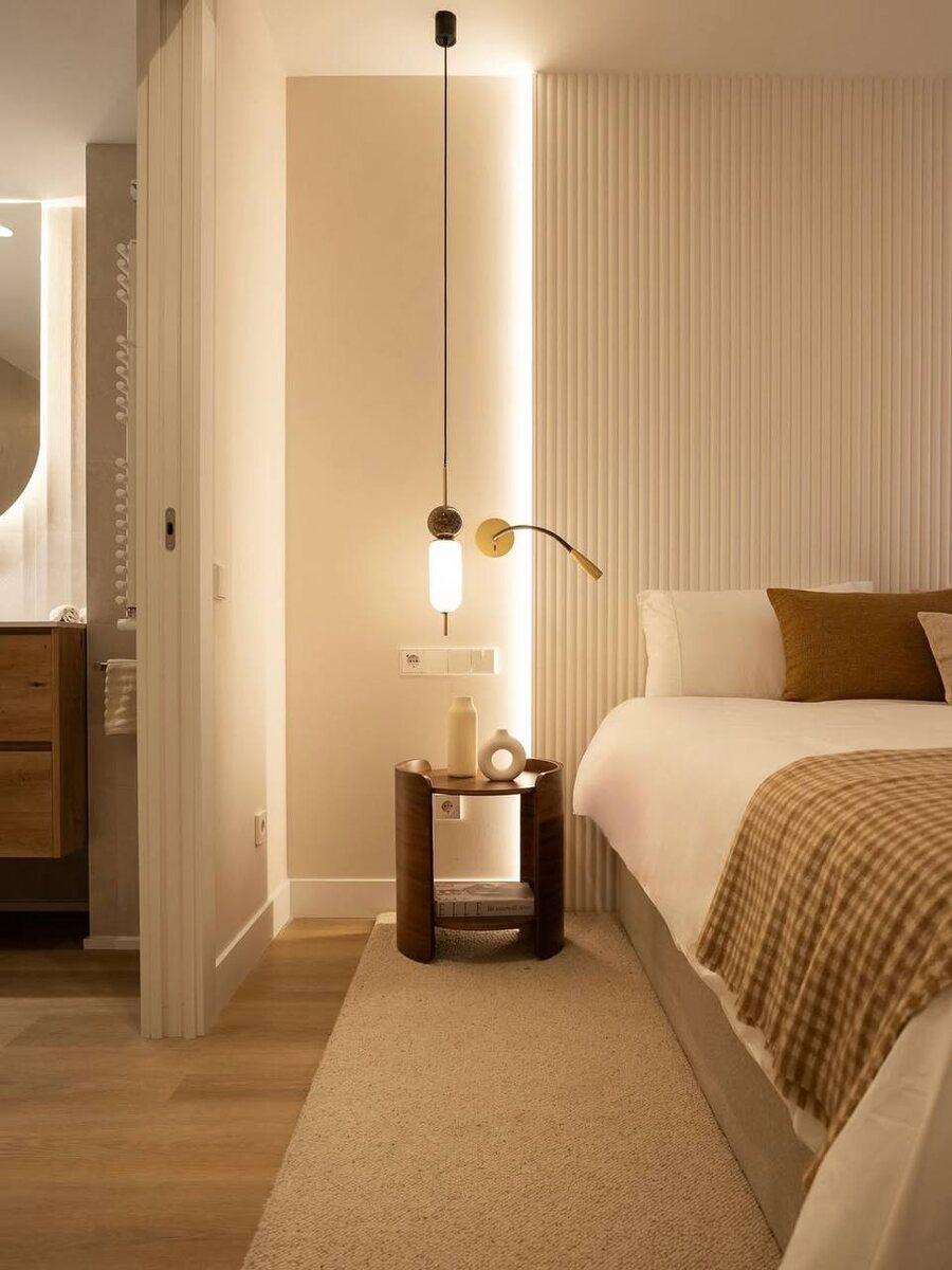 🤍 Стена за изголовьем — главный акцент этой спальни. Вертикальная рельефная панель W110 HILL создает мягкую архитектуру пространства: добавляет глубины, ритма и ощущения уюта. Тёплая подсветка подчёркивает текстуру, а вертикали визуально вытягивают стену и делают интерьер более «собранным». Как вам такой формат акцентной стены? Пишите в комментариях✨ #спальня