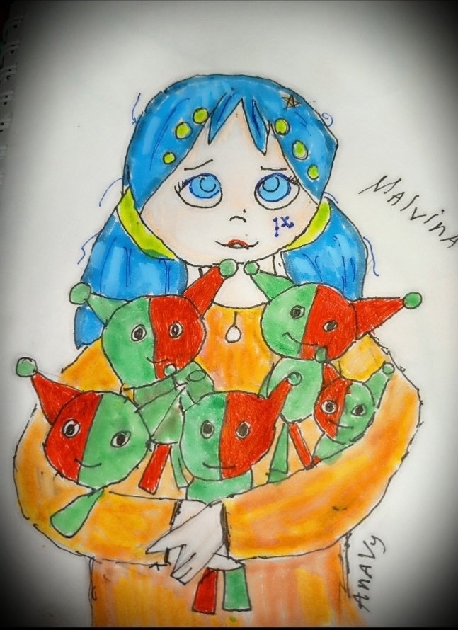 Мальвину и арлекинов нарисовала художница по имени Яна.