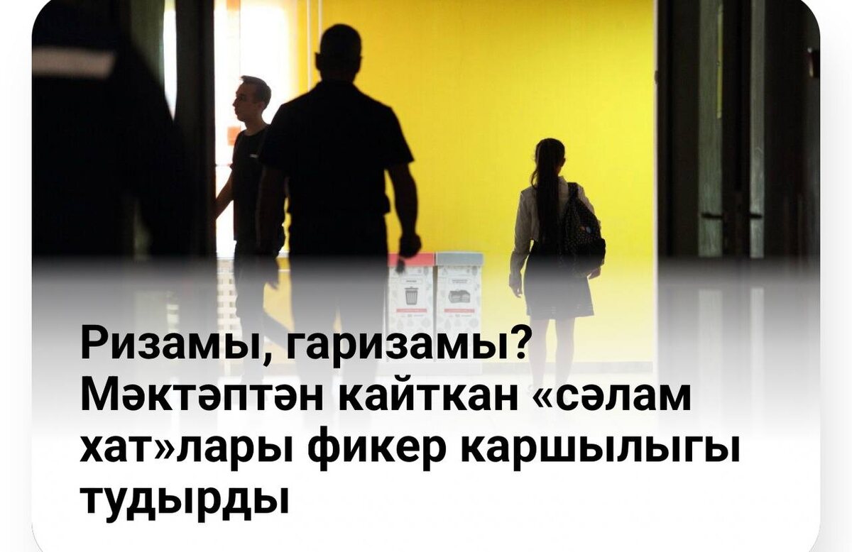 Россия мәктәпләрендәге хәлләрдән барыбызның да чәчләре үрә тора. Бер-бер артлы дәвам иткән бу хәлләр, гафу итәрсез, ниндидер куркыныч флешмоб булып тоела башлады. Көн туса, яңа хәбәр, яңа фаҗига. Укытучыларның йә укучыларның гомерләрен өзүчеләр дә, сәламәтлекләренә зыян салырга өлгерүчеләр дә, куркытып кына калучылар да бар. ‼️ Кул кушырып утырып булмый, нәрсә дә булса эшләргә, чаң сугудан гамәлләргә күчәргә кирәген барыбыз да аңлый. Менә Татарстанның Мәгариф һәм фән министрлыгы киңәше буенча мәктәпләр яңа тәҗрибә башлады. Бу эшчәнлекне әлегә башкача атап булмый. Ни белән бетәсен, кая барып чыгасыбызны белмибез бит әле. Уңышлы булырмы, ачылыгы белән генә истә калырмы – анысын вакыт күрсәтер. Бүген кайсы җавапны сайларга соң? 👇🏻 https://vatantat.ru/news/rizamy-garizamy-maktaptan-kaitkan-salam-xatlary-fiker-karsylygy-tudyrdy-112210