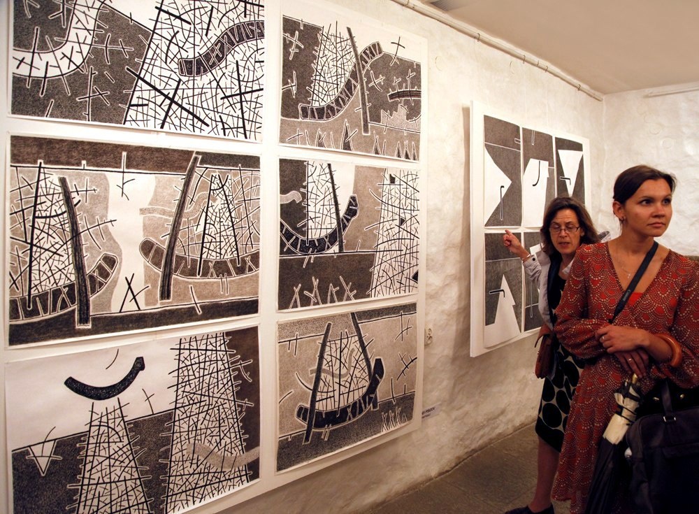 Графический проект Сергея Пшизова "Гнезда" в экспозиции международного триеннале рисунка "Своей рукой". Таллин. Эстония. 2013 год.
