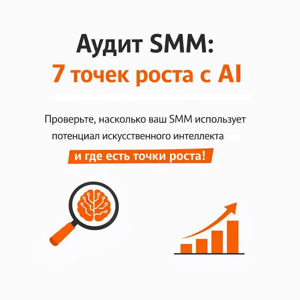 ? Подготовили для вас подробный self-аудит: 7 точек роста SMM с помощью искусственного интеллекта! AI уже сегодня способен: - раскрыть скрытые сегменты вашей аудитории, - точно предсказывать тренды, - планировать публикации по «золотым часам», - автоматизировать рекламу и бюджет, и многое другое! 🔄 Листайте карусель - на каждой карточке чек-лист для поиска точек роста вашего SMM 🚀 Проверьте свои процессы, возможно, именно сейчас ваш SMM может приносить больше результатов и лидов за те же ресурсы! ➡️ roinext.marketing/ 📞 +7 918 366-77-86