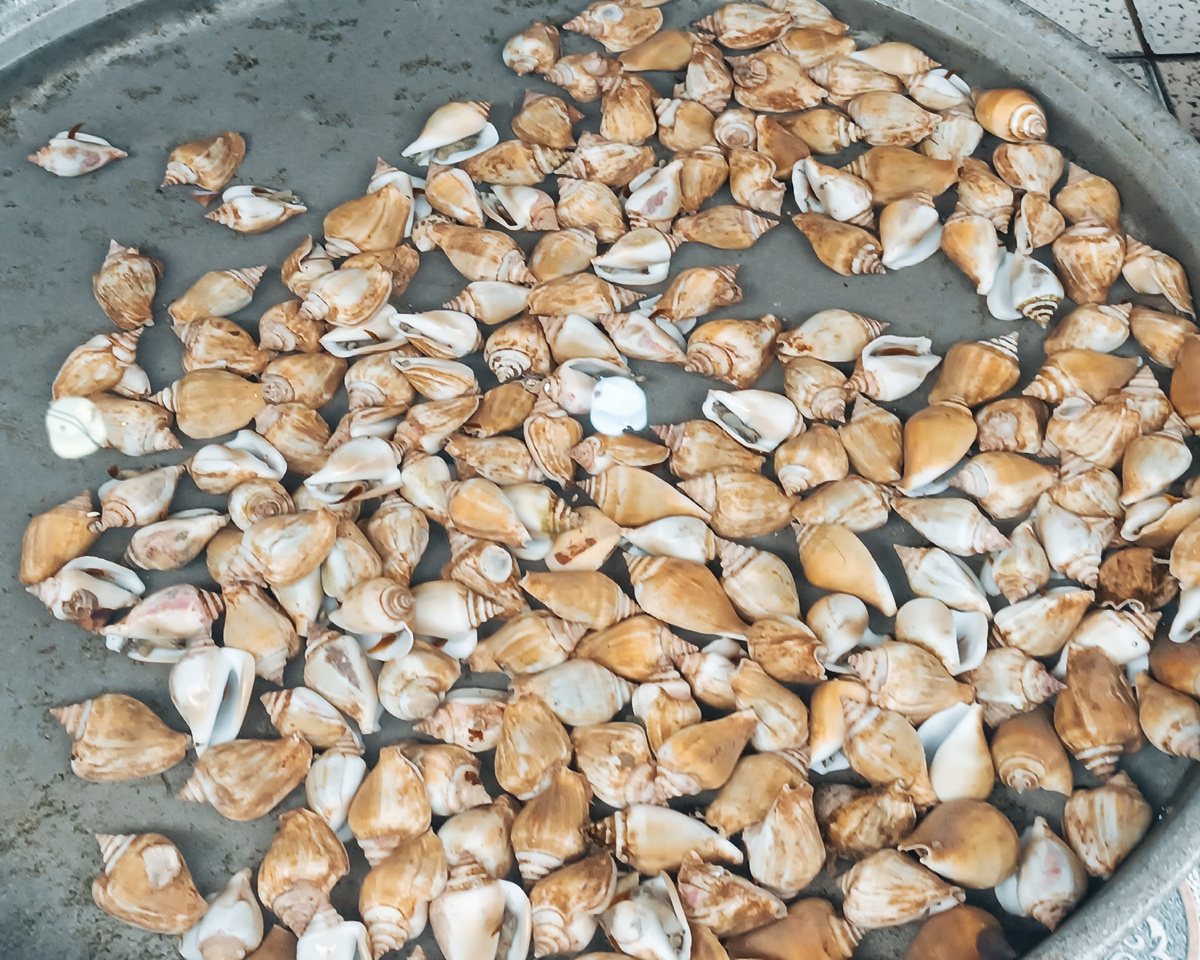 Мы не являемся поклонниками и знатоками молюсков, ведь есть и опасные, например, улитки-конусы (Conus). Но те что продаются на рынке мы сфотографировали и при помощи "умной камеры" Яндекса к некоторым нашли описание.