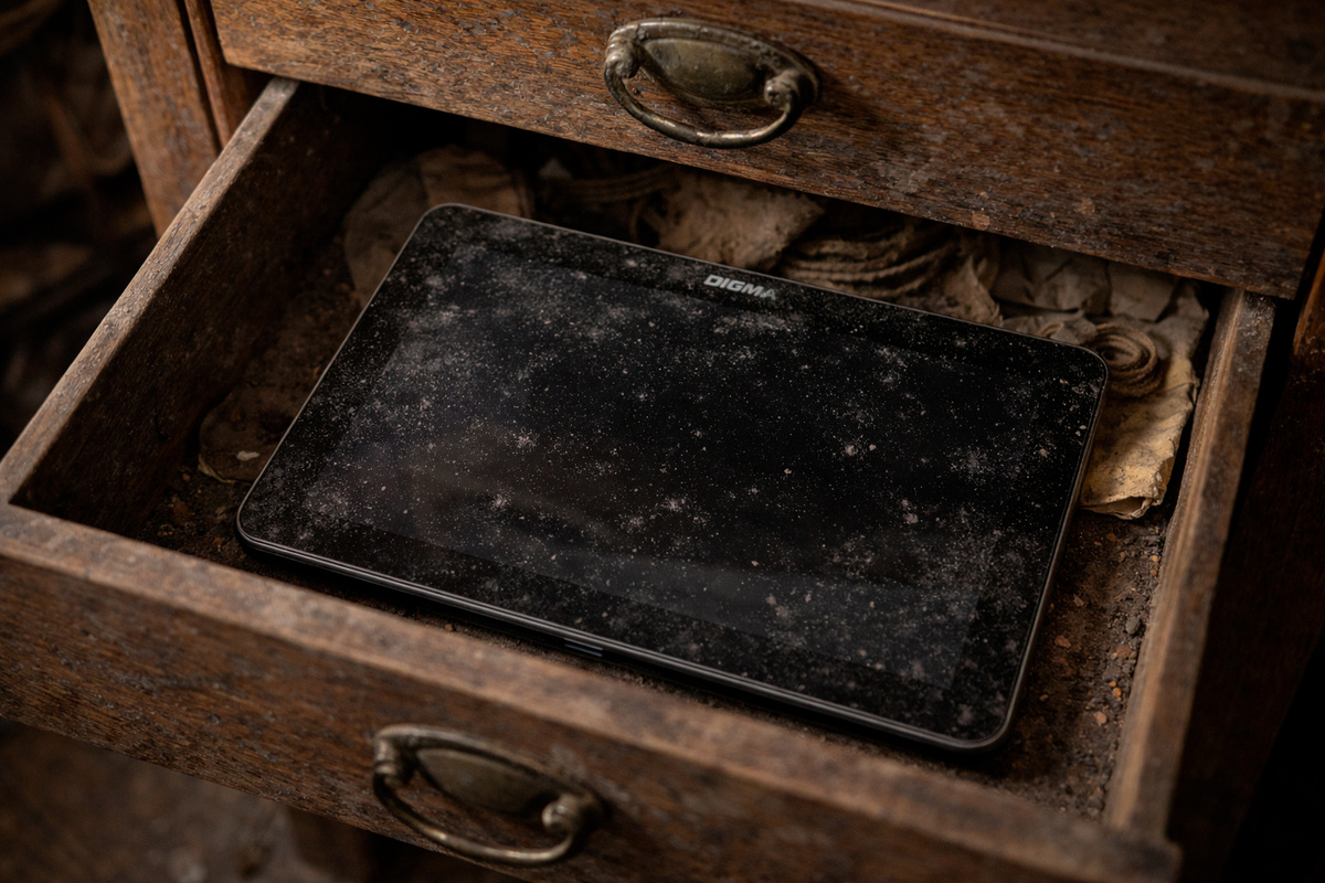 Планшет Digma, пролежавший полгода в ящике стола, однажды извлекается на свет с наивной надеждой — и не включается. Никакой реакции на кнопку питания, ни вибрации, ни логотипа, ни даже робкого намёка на жизнь.