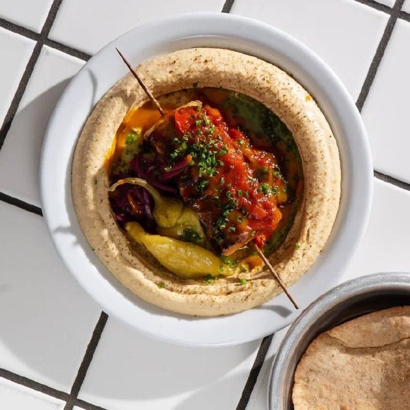 Блюдо дня: хумус с шашлыком и соусом матбуха (700₽) в Dizengof/99.