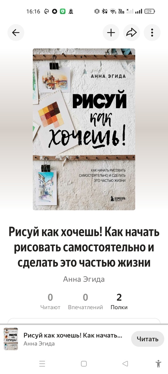 Следующая книга на очереди к прочтению "Рисуй как хочешь!" Тоже авторства Анны Эгиды. Поймала себя на мысли, что Анна как автор мне очень близка. Нет, не как художник, мы абсолютно разные, с разными творческими запросами, а главное потенциал у нас разный. Она невероятно продуктивная личность с огромным жизненным и творческим опытом, которого я пока не имею. Но все еще впереди. Одно я знаю точно, те мастер-классы, что предлагаются в ее книге, я обязательно попробую на практике. Результаты, если они будут, не важно удачные или нет, вы увидите в дневнике. Я с некоторого момента решила быть честной с собой в первую очередь. Удачных работ у каждого художника по его мнению в лучшем случае каждая 3. В худшем процентов 20. Я посчитала, что вы имеете право видеть весь путь целиком, а не только лучшие моменты.
