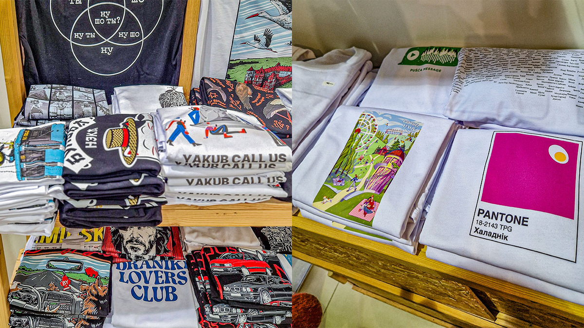 #DeMAGdaily_merch LSTR adzieńnie, Минск. Вот вам ещё одна симпатичная история про белорусский мерч. Давно мечтала побывать в физическом магазине LSTR, и наконец добралась. Ребята создают мерч с белорусскими сюжетами на основе иллюстраций и идей местных художников и дизайнеров. Многие работы я встречала в интернетах в виде артов, а в магазине можно их приобрести в виде одежды, носков, рюкзаков и сумок, пинов и стикеров. 🩷 Нравится: и идея такого магазина с современными белорусскими символами, мемами и артами; и реализация тоже нравится. Тут и отличный трикотаж, и качественная печать, и широчайший ассортимент. Листать футболки у меня просто устали руки, я правда не ожидала, что так много всего будет в наличии. Обилие авторов и принтов тоже впечатляет: есть и романтичные, и смешные, и традиционные, и с крутым привкусом «нацыянальнай годнасцi». Себе я взяла носки с «Халаднiком» и футболку «Куст бульбы» с иллюстрацией Яны Герасимович. И еще очень и очень много всего понравилось, позабавило