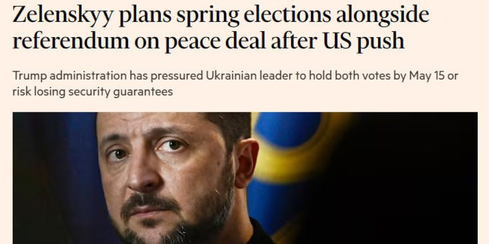 Украина начала планировать президентские выборы, которые должны пройти совместно с референдумом по поводу мирного соглашения с Россией, пишет Financial Times со ссылкой на источники. Администрация Трампа требует от Киева провести оба мероприятия до 15 мая, иначе Украина рискует потерять гарантии безопасности, обещанные США. По предварительным данным, Владимир Зеленский объявит о грядущих выборах и всеобщем голосовании в очередную годовщину начала спецоперации 24 февраля.
