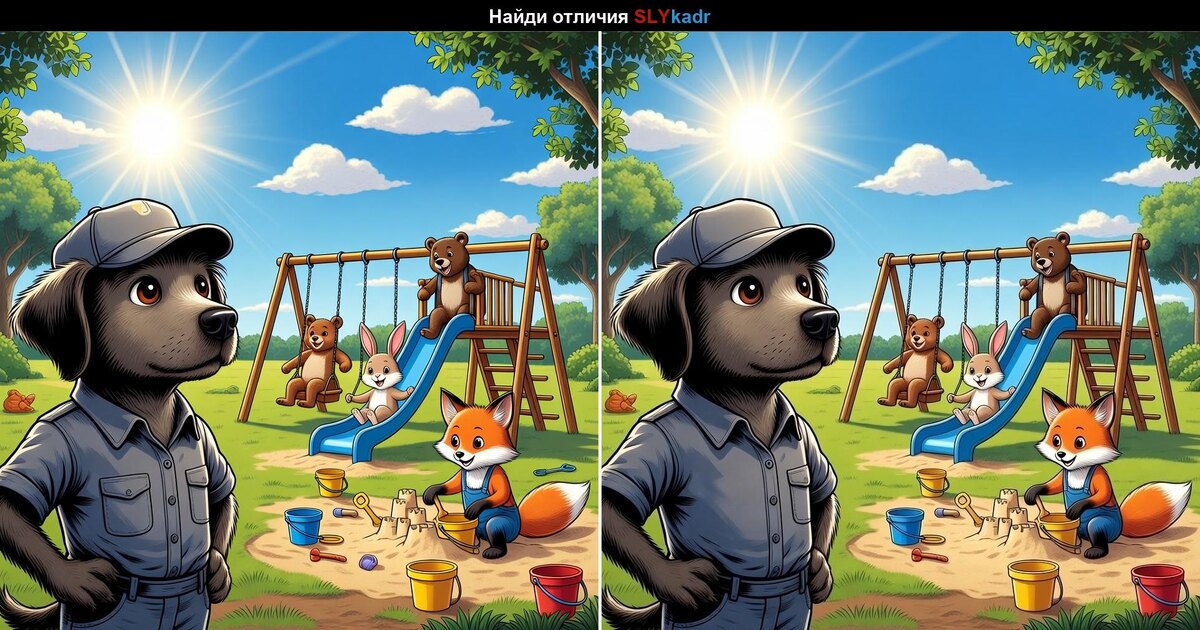 Сегодня мы приготовили для вас уютное, но коварное задание! Солнечный день, детская площадка, зверята весело играют…