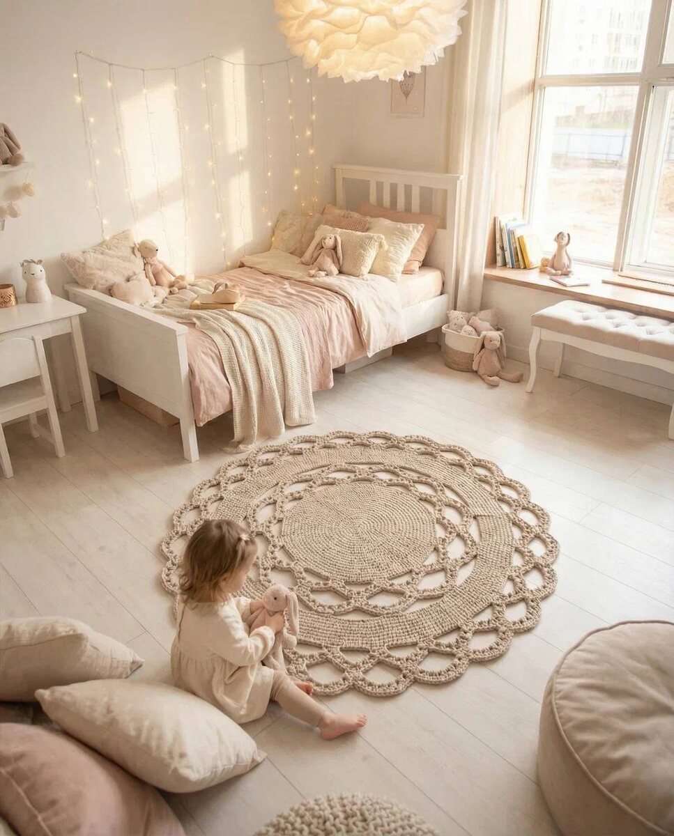 Это когда дом дышит ровно Мягкий свет из окна Теплый пол Ребёнок, который сидит на ковре и никуда не спешит Ничего «важного» не происходит - и именно поэтому происходит всё самое главное Ковёр здесь не как вещь Он как фон для жизни Для первых игр, для сказок, которые шепчут игрушкам для тех моментов, которые потом вдруг вспоминаются через годы - без причины, но с теплом «Мозаика» - про это Про уют без показной декоративности Про спокойствие, которое не кричит, а остаётся Про дом, в котором можно просто быть И да, это тот самый ковер, который хочется трогать на котором хочется сидеть и который не «для картинки», а для жизни МК на ковер «Мозаика» доступен в Клубе рукодельниц: https://vk.com/lacemats?w=donut_payment-104797818&levelId=388 и на сайте: https://lacemats.ru/shop/video-master-klass-krugly
