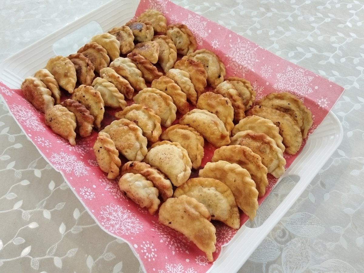 Чебупели — это гибрид чебурека и пельменя, блюдо современной городской кухни. Их легко приготовить дома с разными начинками: мясом, курицей или овощами. Вот три рецепта. ### С мясом **Ингредиенты:** - Репчатый лук — 200 г; - Молотый чёрный перец — по вкусу; - Соль — 10 г; - Молоко — 100 мл; - Пшеничная мука — 400 г; - Оливковое масло — 60 мл; - Фарш — 500 г; - Растительное масло — 150 мл; - Кипяток — 250 мл. **Рецепт:** 1. Просейте 250 г муки, добавьте 1 ч. л. соли и залейте 250 мл кипятка. Тщательно перемешайте и дайте немного остыть. 2. Влейте 4 ст. л. растительного масла и вымесите, постепенно добавляя оставшуюся муку, пока не получите эластичное тесто. Уберите его в холодильник на 30 минут. 3. Приготовьте фарш: пропустите через мясорубку по 250 г жирной свинины и говядины дважды, добавьте мелко нарезанный лук, молоко, соль, перец и тщательно перемешайте. 4. Раскатайте тесто в тонкий пласт толщиной около 2 мм и вырежьте стаканом кружки диаметром 7–8 см. 5. На каждый кружок положите