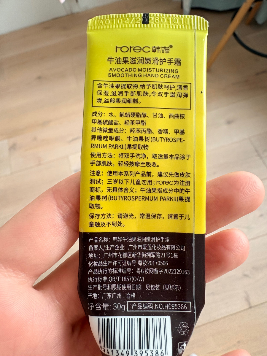 Очень часто эти китайские кремушки для рук можно увидеть в маникюрных салонах, их продают или раздают в качестве подарка. Мне тоже дали в качестве подарка. Крем Avocado moisturizing smoothing hand cream от бренда Rorec. У меня раньше уже был обзор на крем с молочными протеинами, они очень похожи.