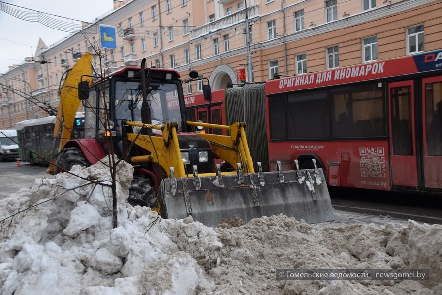 В Гомеле убирают снег с помощью техники на проспекте Ленина