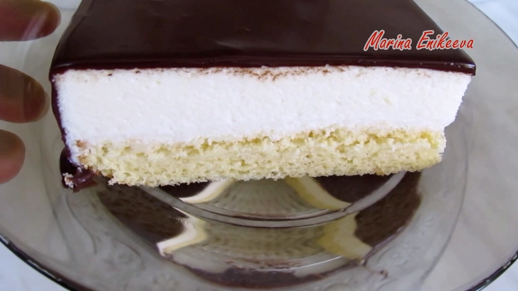 Торт ПТИЧЬЕ МОЛОКО! ФАНТАСТИЧЕСКИ НЕЖНЫЙ ПРОСТО ТАЕТ во РТУ! ЛЮБИМЫЙ ТОРТ из ДЕТСТВА! ТОРТ из СССР по ГОСТу! НЕЖНЕЙШЕЕ СУФЛЕ и ВКУСНЫЙ БИСКВИТ приготовить ОЧЕНЬ ПРОСТО! Яйца - 2 шт (и 2 ЖЕЛТКА) Сахар - 60 г Мука - 60 г Молоко - 10 г Масло растительное - 10 г Соль - щепотка Форма 24 см диаметром. КРЕМ СУФЛЕ ПТИЧЬЕ МОЛОКО: Яйца - 2 шт (Только БЕЛКИ) Сахар - 150 г Молоко - 200 мл Сгущенное молоко - 100 г Масло сливочное - 100 г Желатин - 20 г Вода - 120 г (60 г на желатин и 60 г на сахарный сироп) ГЛАЗУРЬ: Шоколад - 100 г Молоко - 60 мл Масло растительное - 1 столовая ложка Марина Еникеева