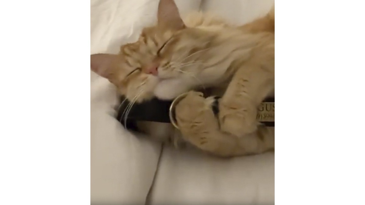 После смерти пса кот долго грустил. Потом он нашел его ошейник. Этот ошейник теперь делает его счастливым