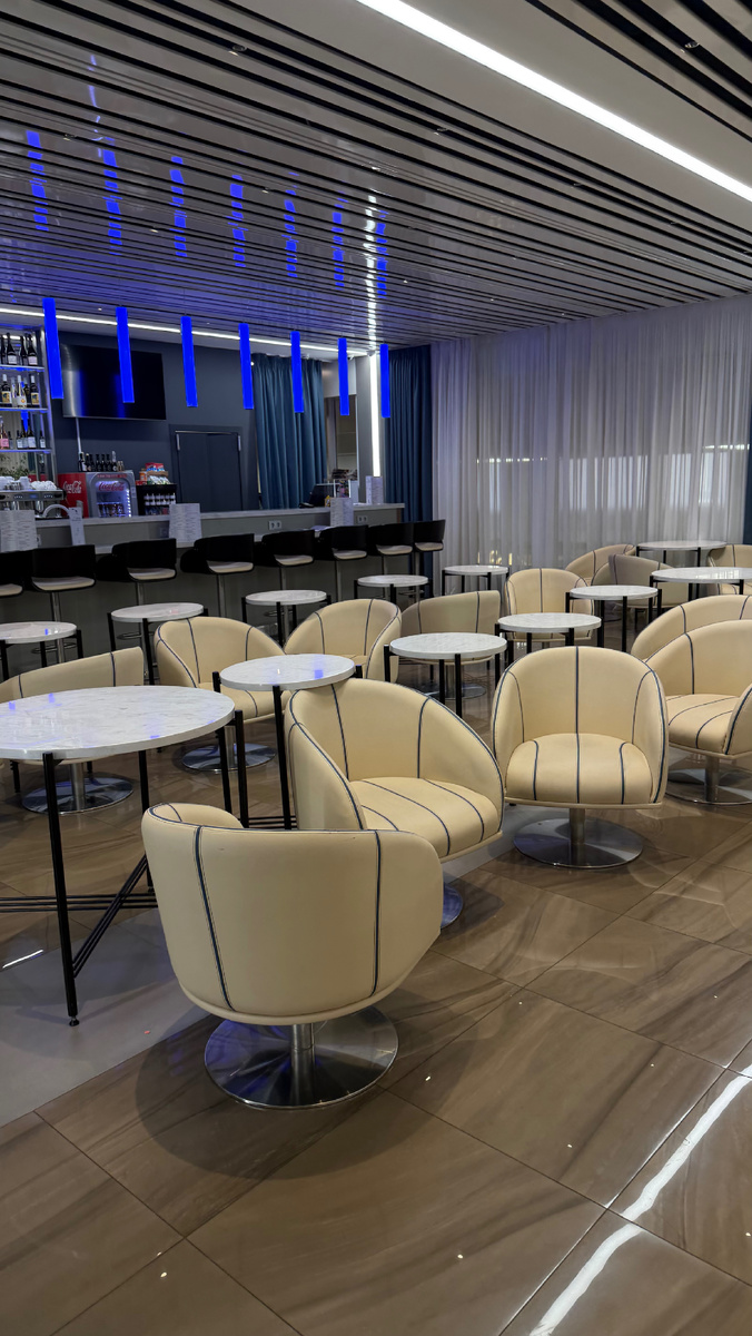Дата посещения бизнес-зала внутренних авиалиний - 5 февраля 2026 года. По банковской программе. Был в этом бизнес-зале уже много-много раз. Он разительно отличается от бизнес-зала в международном терминале. Отзыв здесь. Большое пространство, современная мебель. Доступны алкогольные напитки за дополнительную плату. Работает бар. Питание организовано по система «шведский стол». Я уже привык к тому, что обычно от раза к разу в бизнес-залах аэропортов питание ухудшается. Выбор становится меньше, качество продуктов хуже. Бизнес-зал же в аэропорту Краснодара реально удивил. Либо мне повезло. Если обычно салатов 1-2, в этот раз аж 5 - свекла, морковкча, овощи, кукуруза и даже салат «Столичный». Из горячего - куриные голени, на гарнир - гречка, булгур. Супы - бульон с гренками, суп-лапша. Напитки - морс, вода, чай, кофе. Важно отметить, что из кофе - американо и эспрессо. Отдельно можно добавить холодное молоко. Сладости - печенье в ассортименте, кексы, сухофрукты, сушки, конфеты. На вкус - аб
